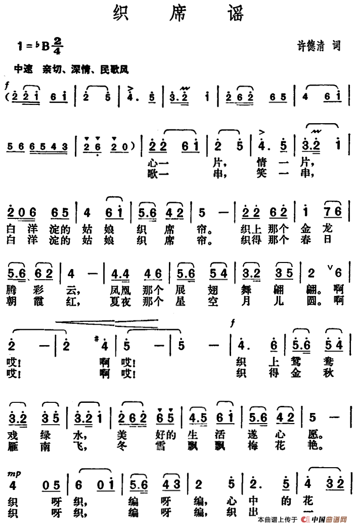 关于《织席谣》曲谱的评论