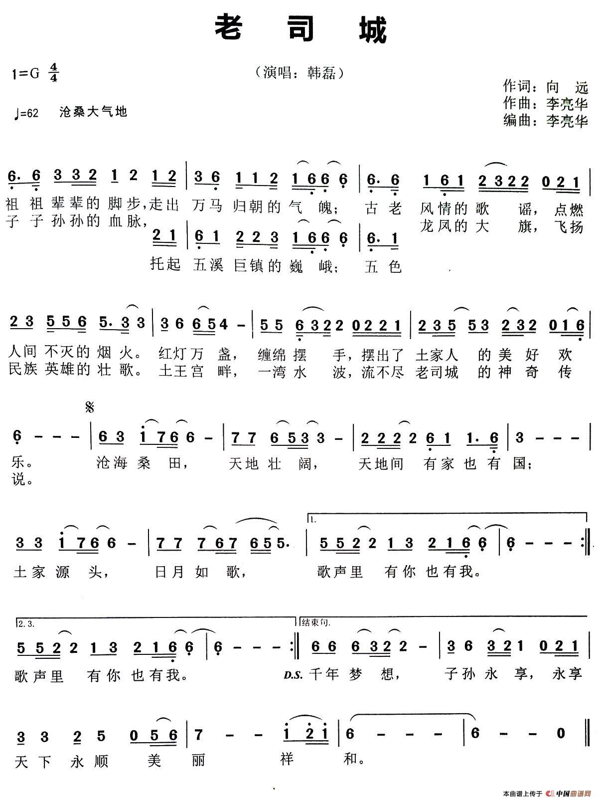 关于《老司城》曲谱的评论