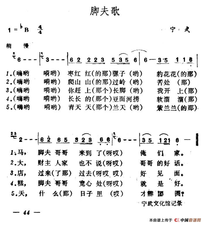 关于《脚夫歌》曲谱的评论