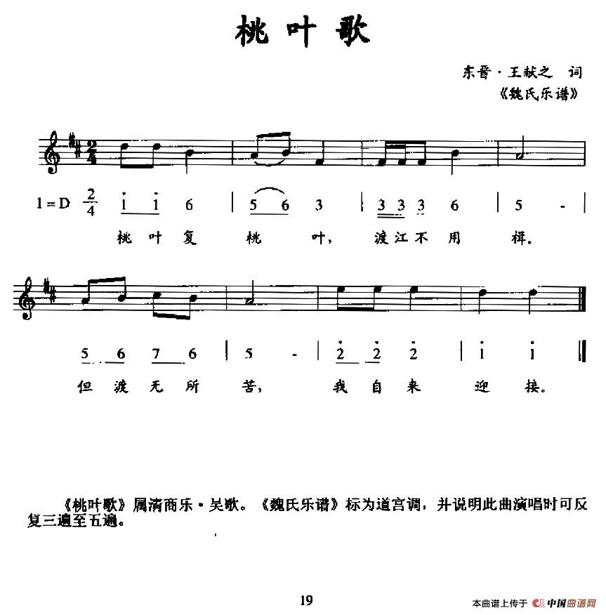 关于《桃叶歌》曲谱的评论