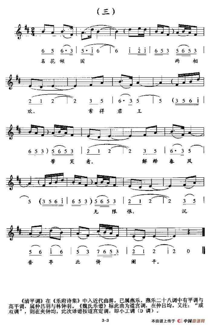 选自刘崇德译谱《乐府歌诗·古乐谱百首》河北大学出版社 2001版,谱友大雅扎的扎上传谱友论坛。