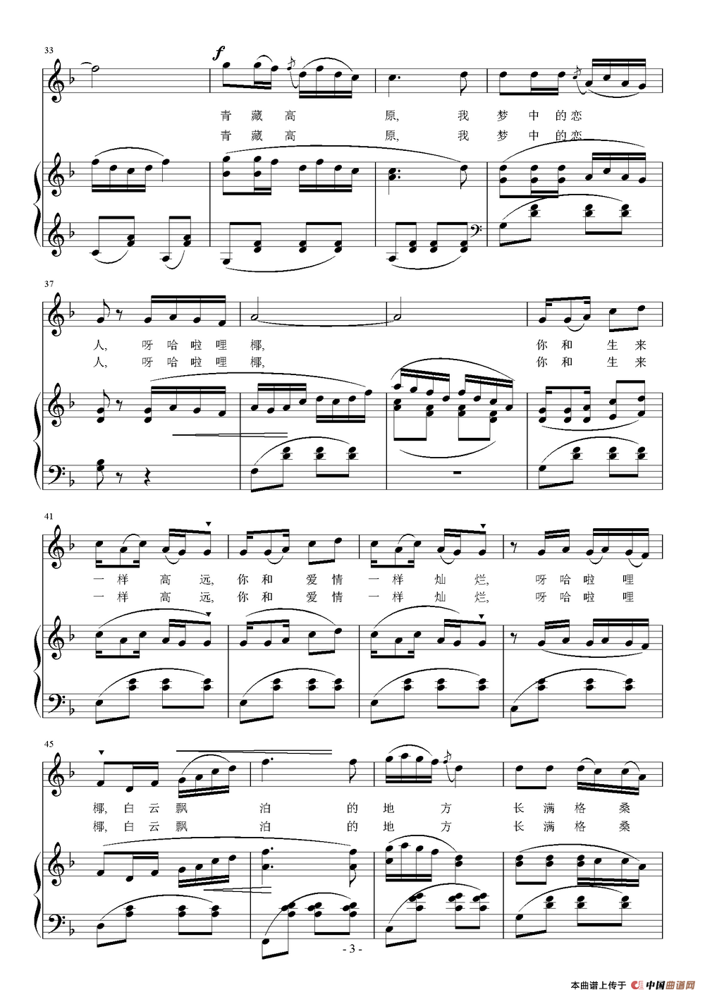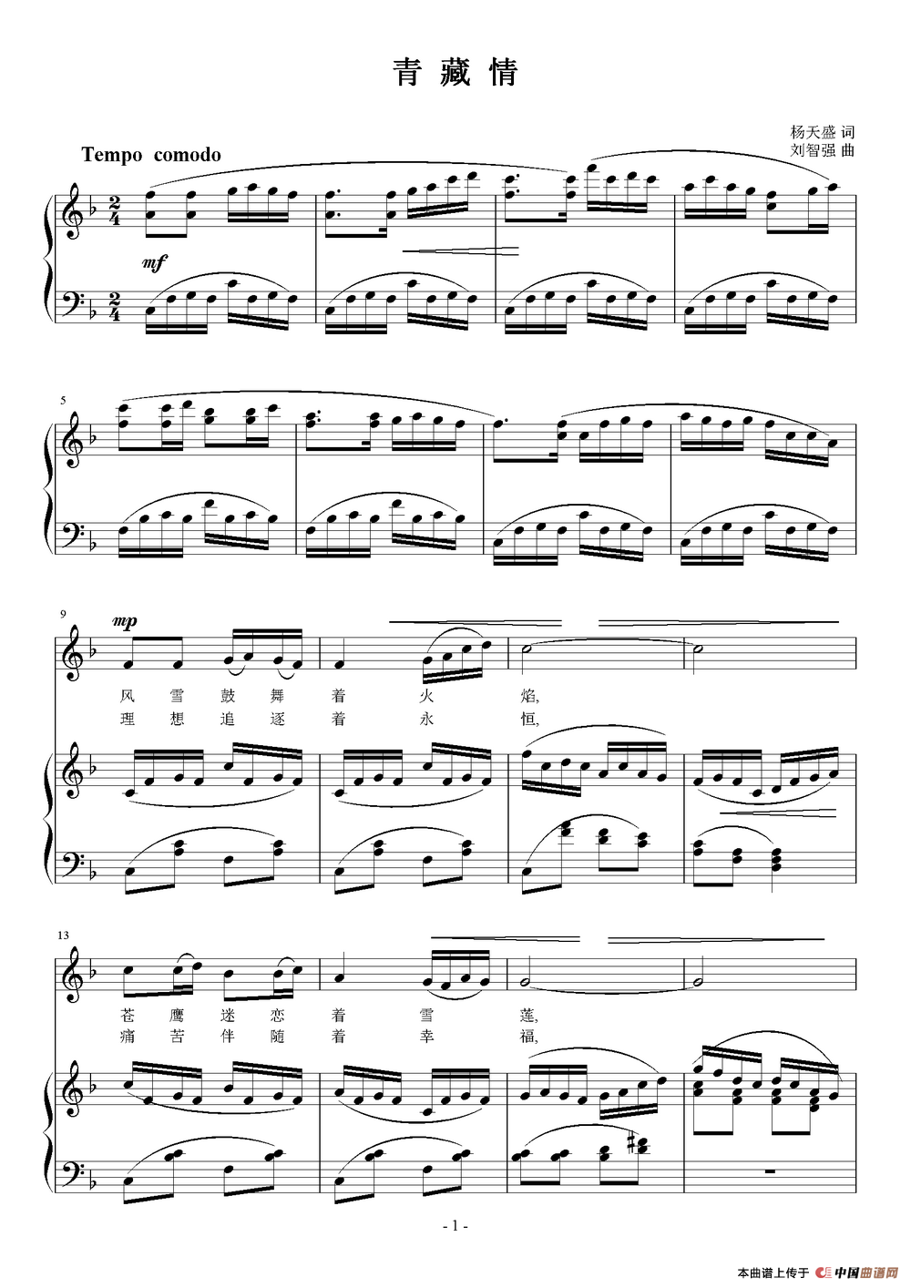 关于《青藏情》曲谱的评论