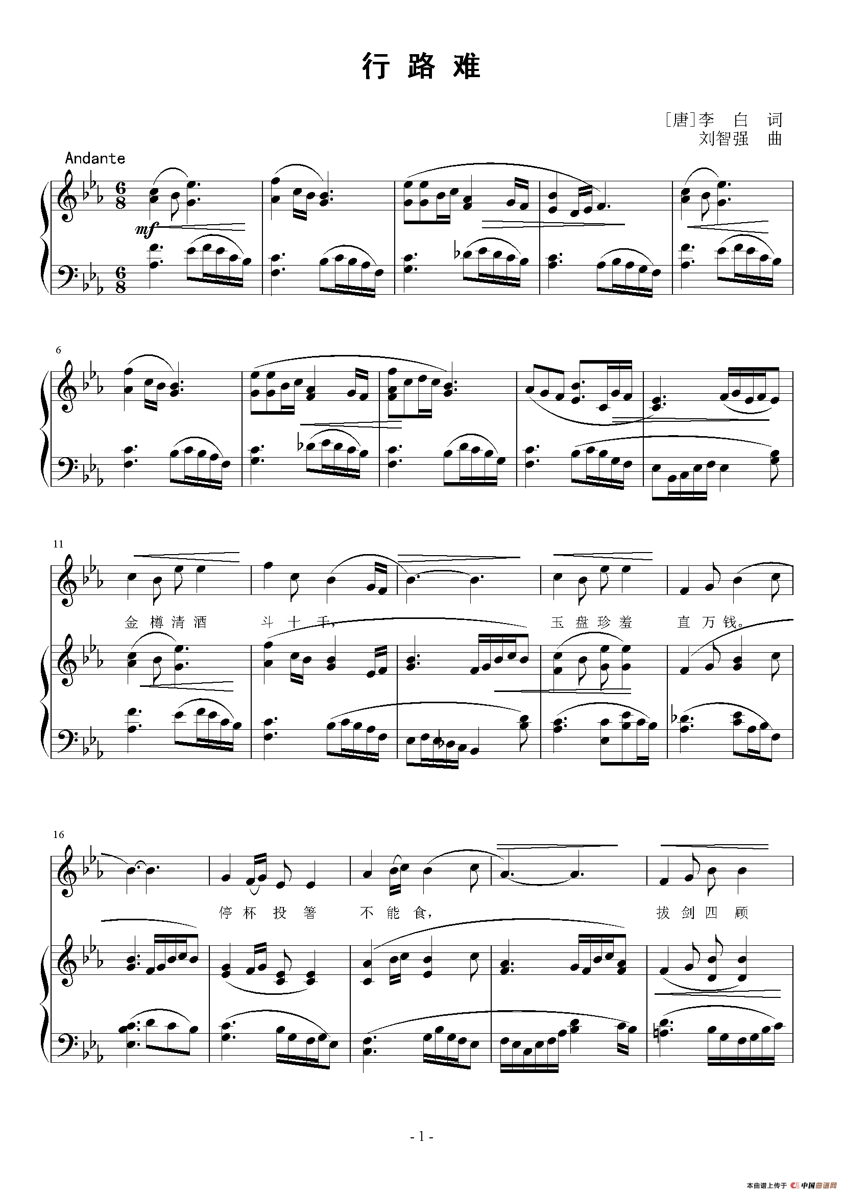 致谢:《中国曲谱网》衷心感谢作者老师馈赠原版歌谱!