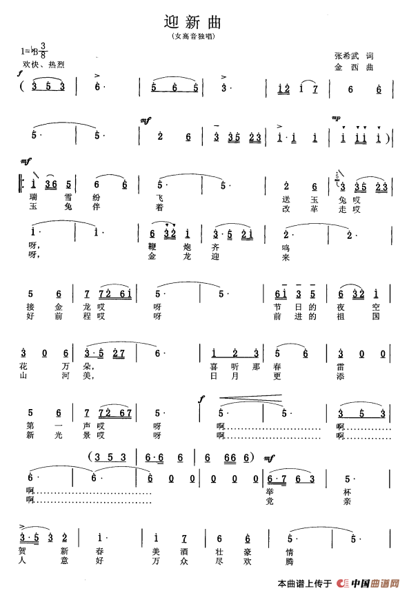 关于《迎新曲(女高音独唱)》曲谱的评论