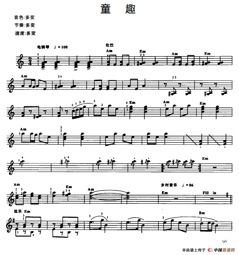 致谢:《中国曲谱网》衷心感谢作者老师馈赠原版歌谱!
