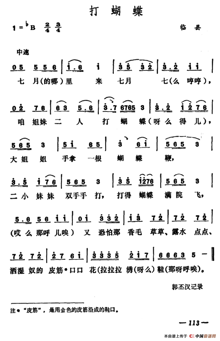 选自山西省音乐舞蹈研究所编著《山西民歌300首》,山西临县山歌。