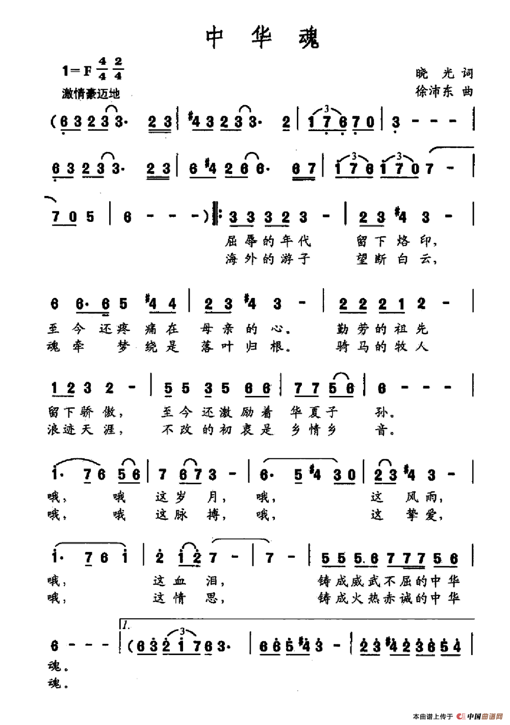 关于《中华魂》曲谱的评论