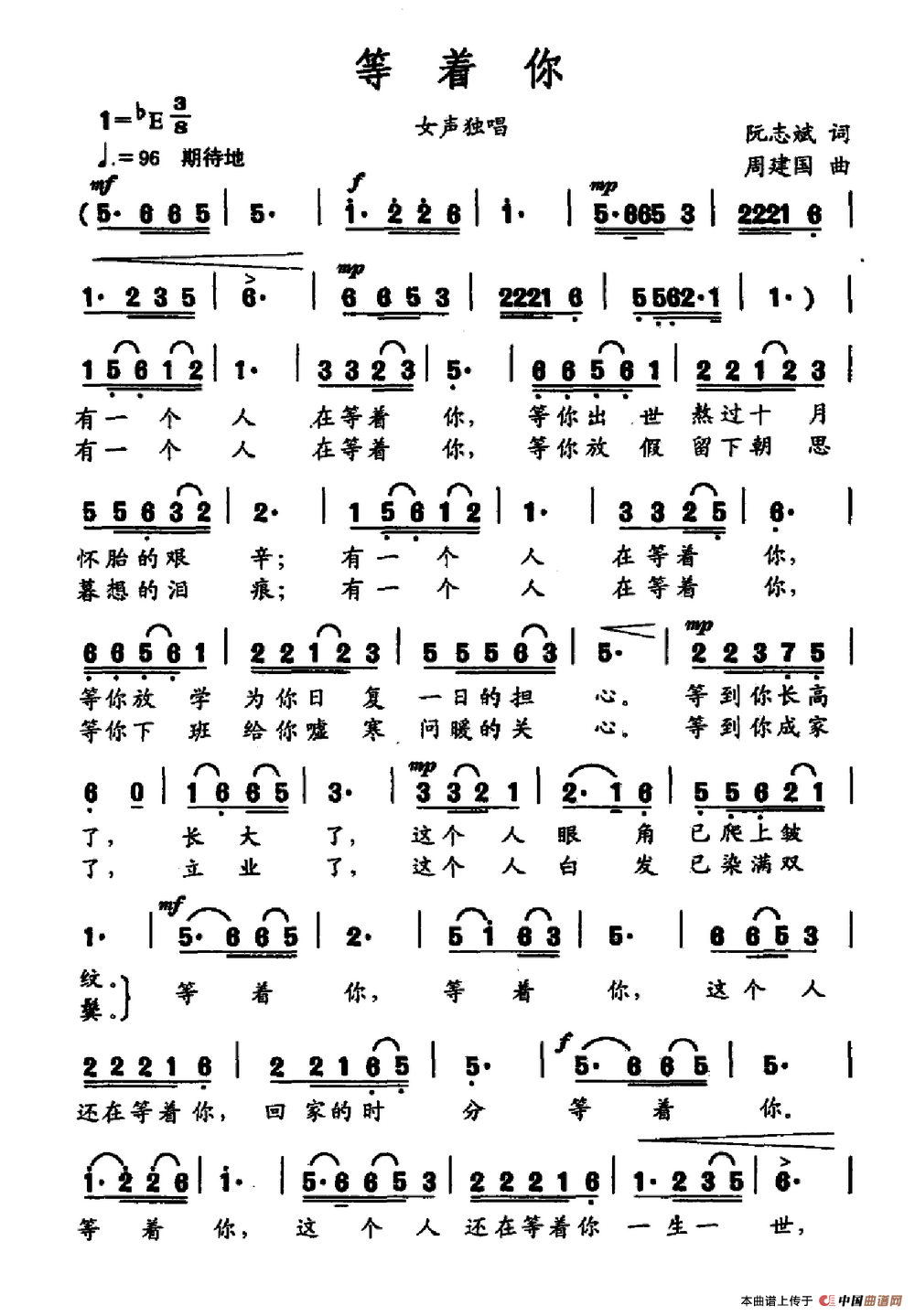 提示:在曲谱图片上单击右键,选择“图片另存为...”即可将曲谱保存到您的电脑中,打印时候可将图片插入到WORD中,调整合适大小打印即可。