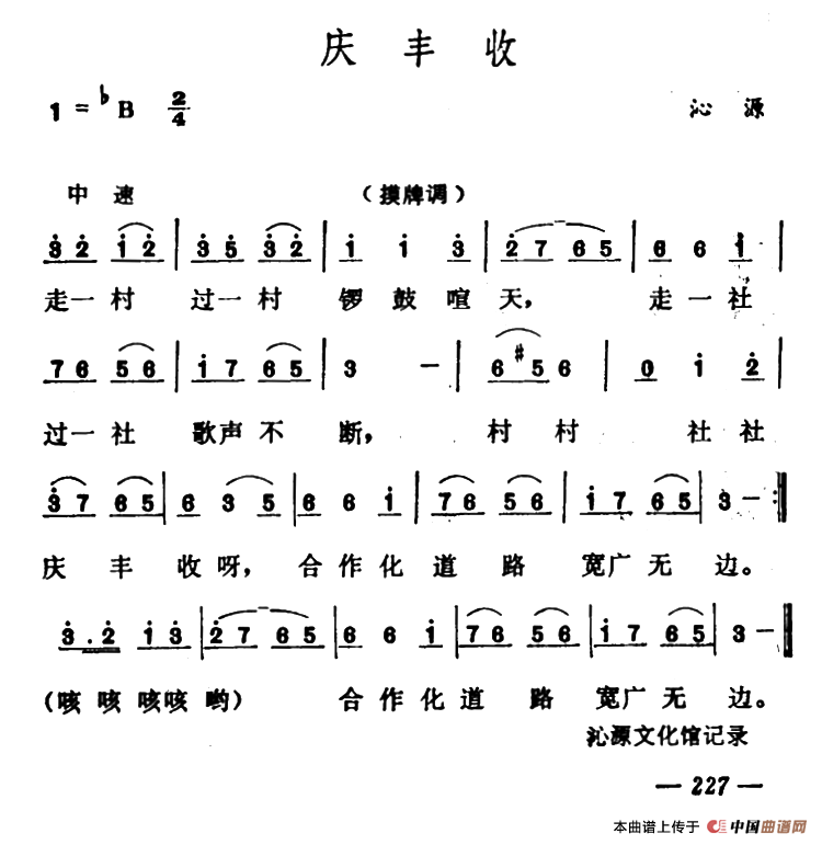 选自山西省音乐舞蹈研究所编《山西民歌300首》,山西沁源新民歌。