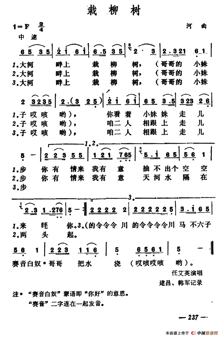 选自山西省音乐舞蹈研究所编著《山西民歌300首》