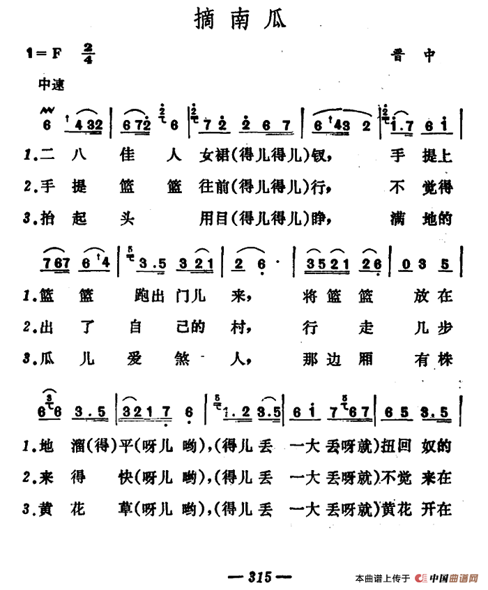 关于《摘南瓜》曲谱的评论