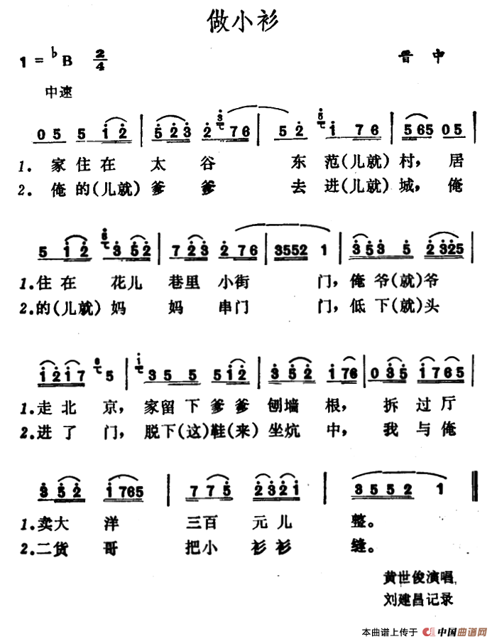 关于《做小衫》曲谱的评论