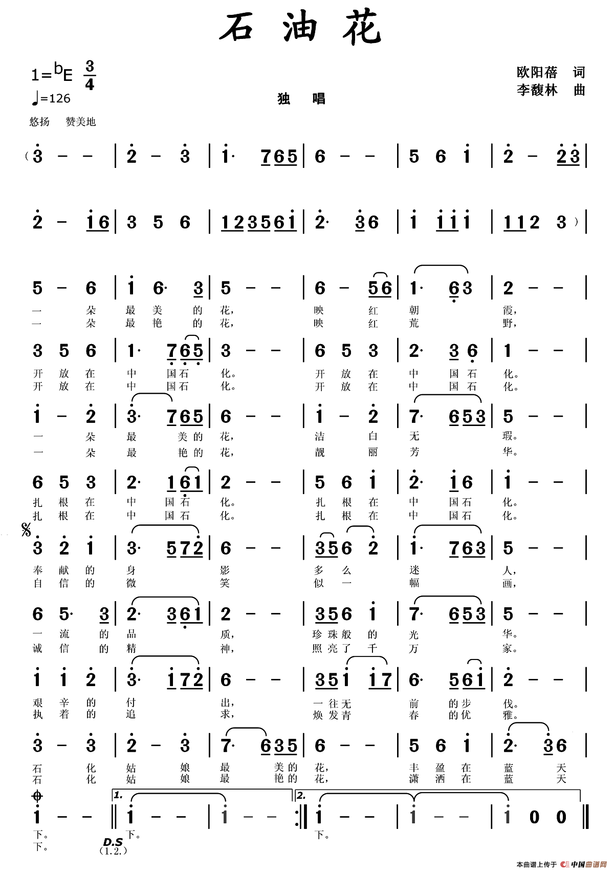 致谢:《中国曲谱网》衷心感谢作者老师馈赠原版歌谱!