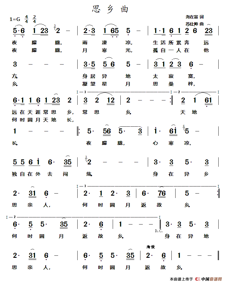 《思乡曲》文本歌词