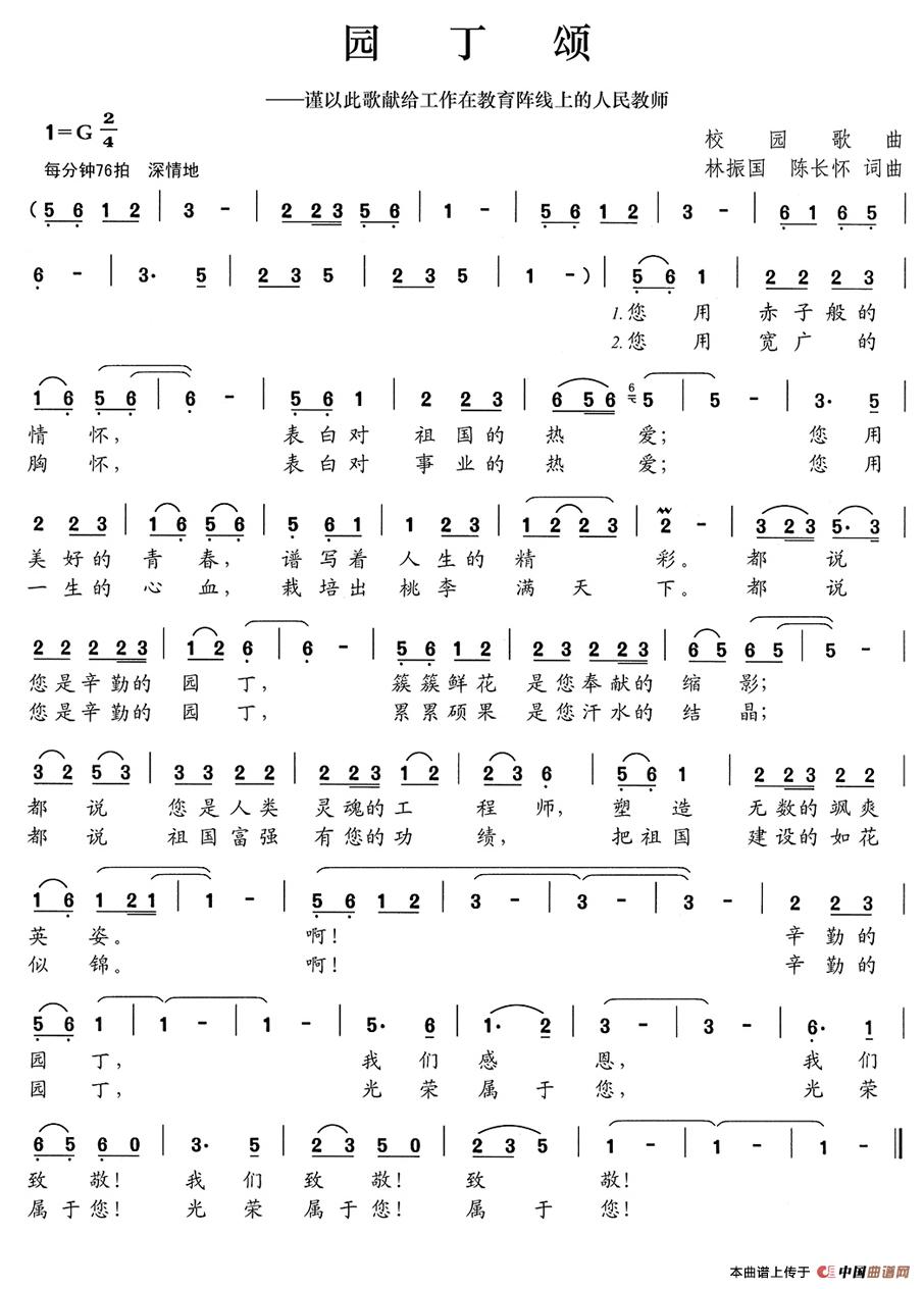 园丁颂(林振国、陈长怀词 林振国、陈长怀曲)