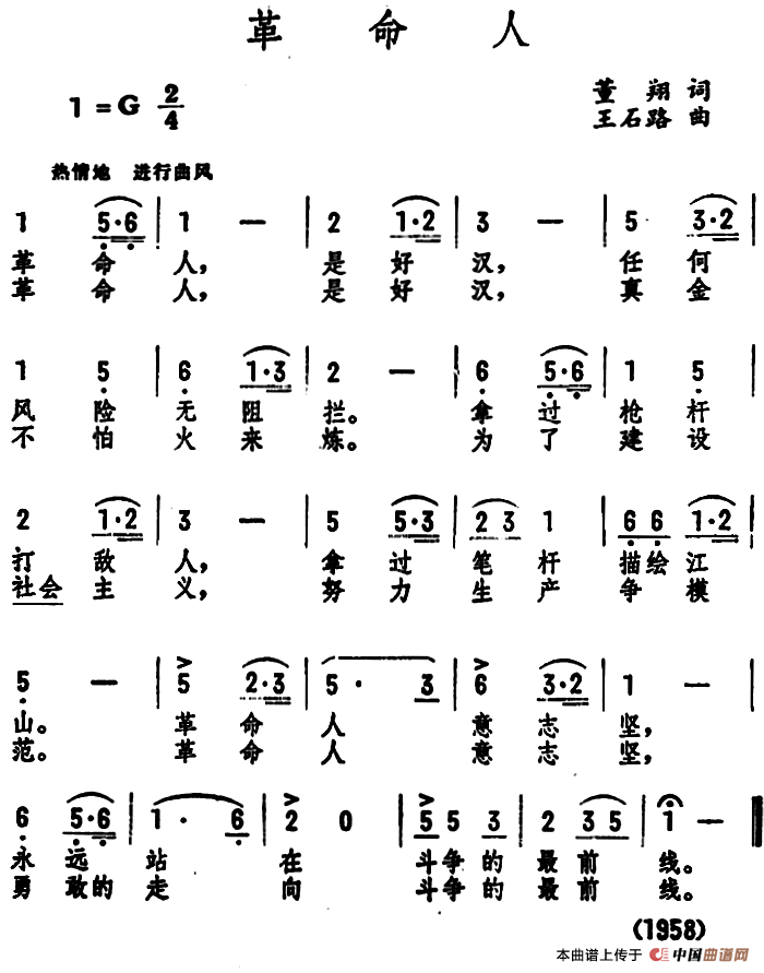 关于《革命人 》曲谱的评论