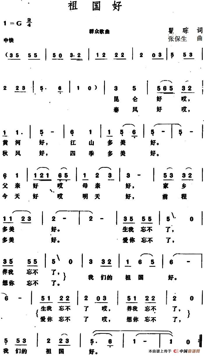 关于《祖国好 》曲谱的评论