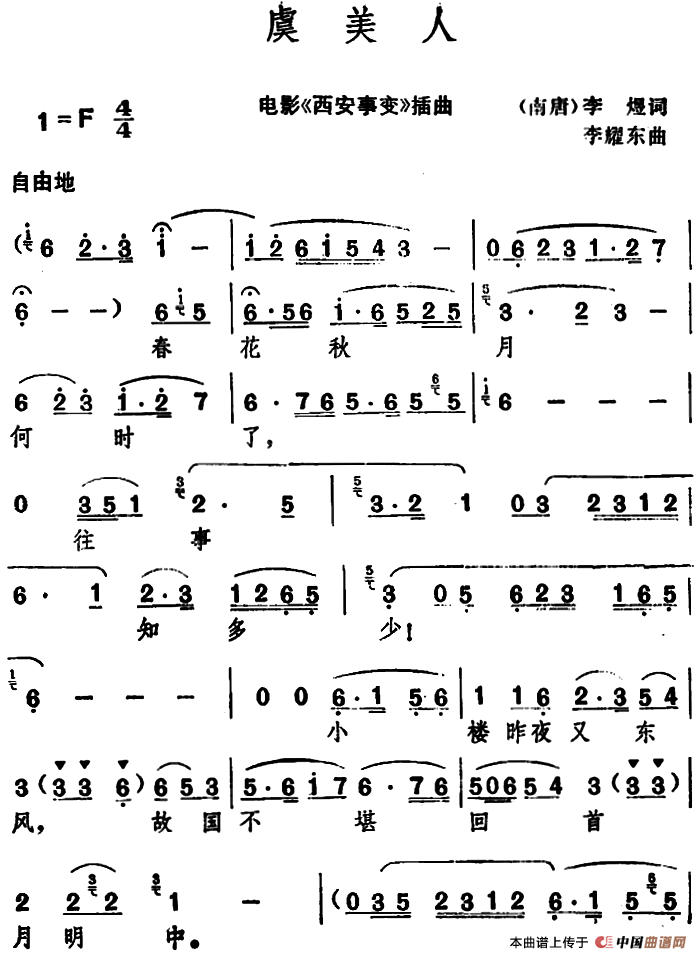 ![虞美人 ([南唐]李煜 词 李耀东曲)(1)_原文件名:虞美人 (南唐)李煜词 李耀东曲.png](/Public/Uploads/2016/01/08/237945568f953c910ef.png)
