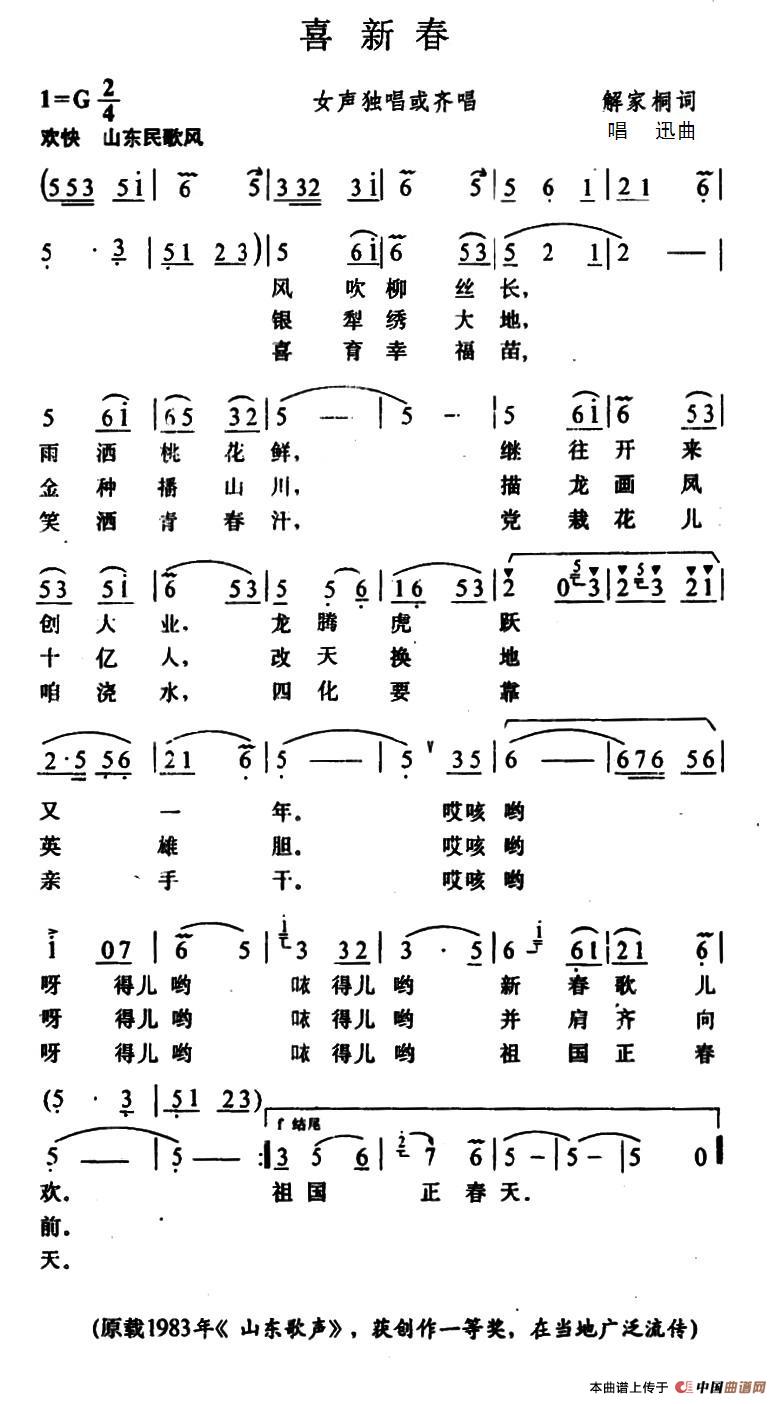 关于《喜新春》曲谱的评论