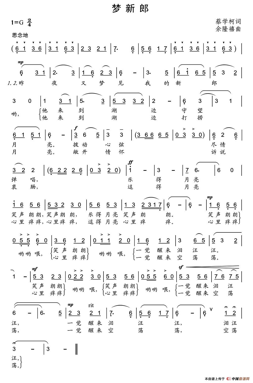 关于《梦新郎》曲谱的评论