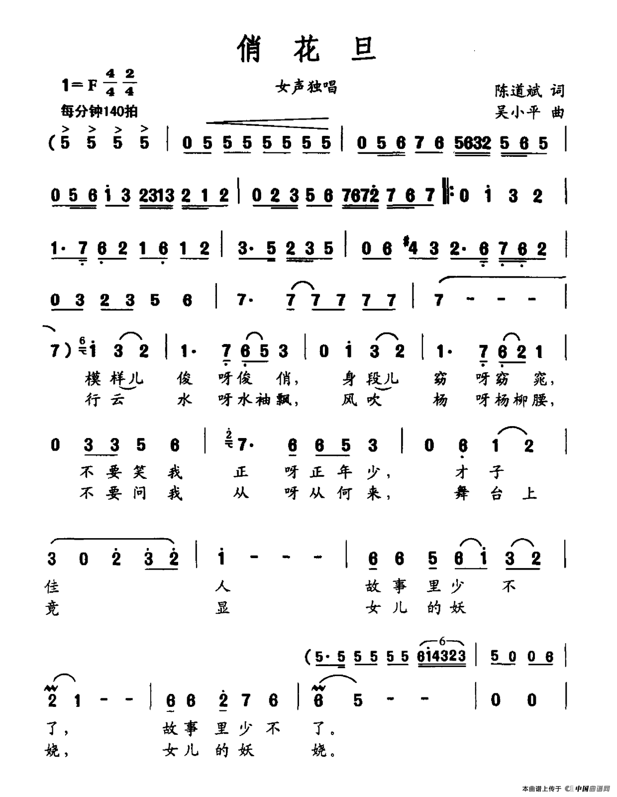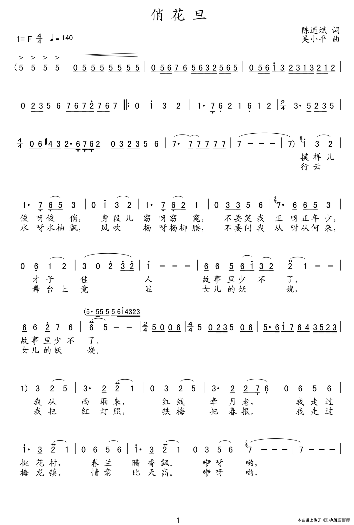 致谢:《中国曲谱网》衷心感谢作者老师馈赠原版歌谱!