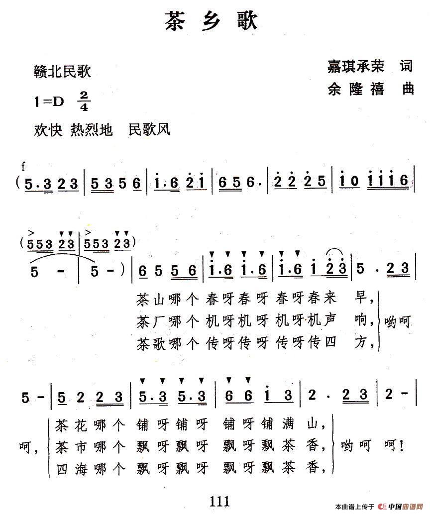 关于《茶乡歌》曲谱的评论