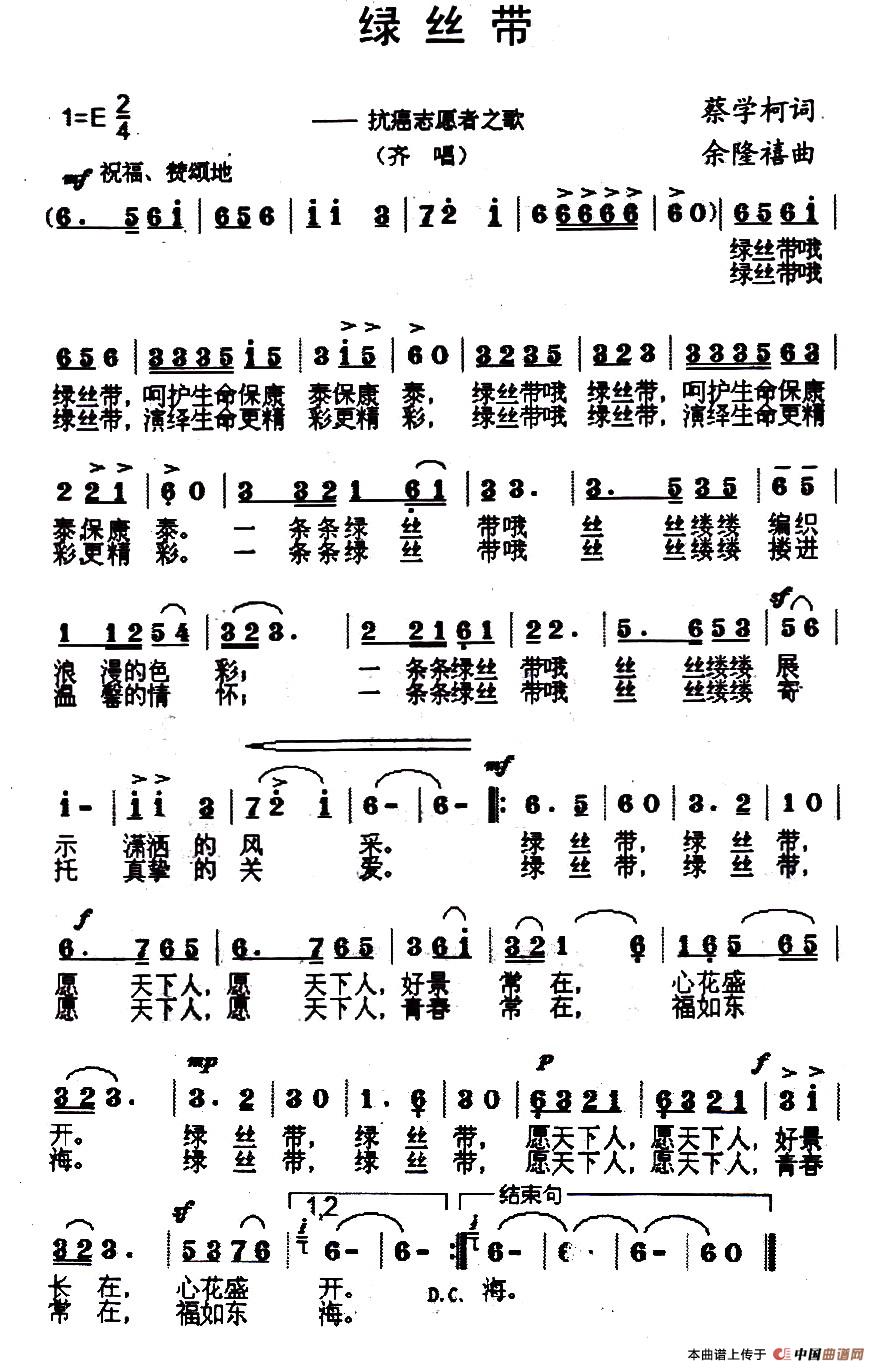 致谢:《中国曲谱网》衷心感谢作者老师馈赠原版歌谱!