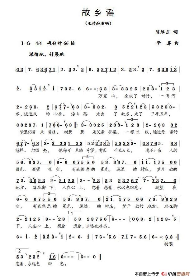 致谢:《中国曲谱网》衷心感谢作者老师馈赠原版歌谱!