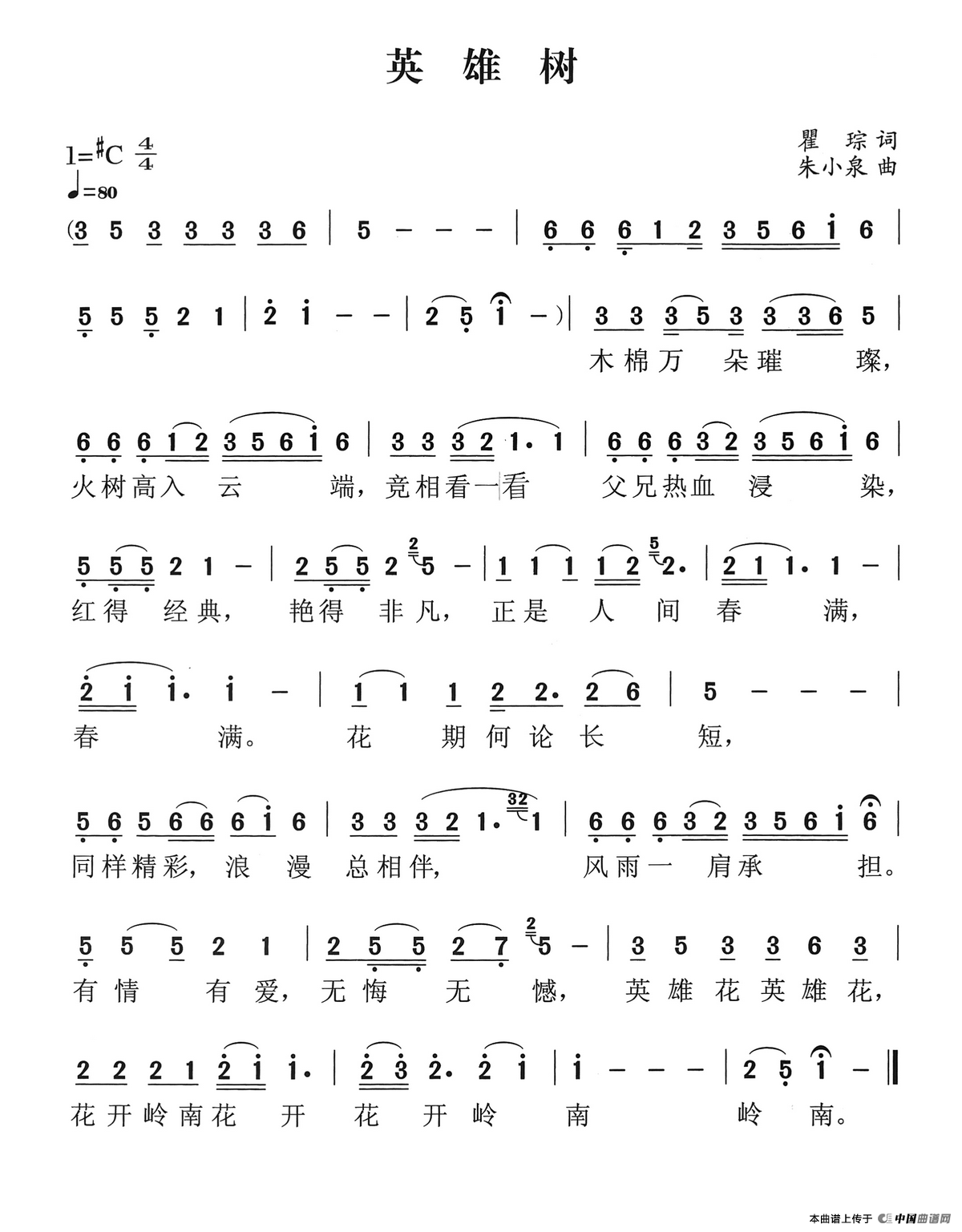 致谢:《中国曲谱网》衷心感谢作者老师馈赠原版歌谱!
