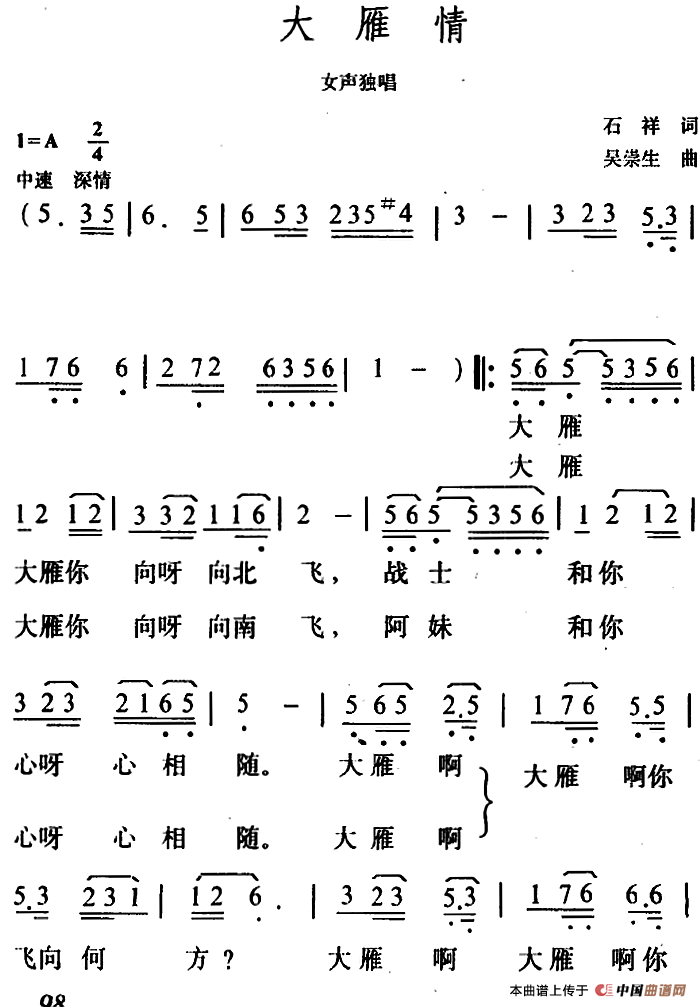 提示:在曲谱图片上单击右键,选择“图片另存为...”即可将曲谱保存到您的电脑中,打印时候可将图片插入到WORD中,调整合适大小打印即可。