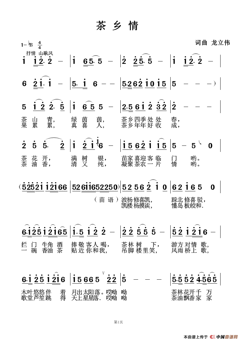 当前位置: 首页 民歌曲谱 三字歌名 茶乡情(龙立伟词 龙立伟曲)