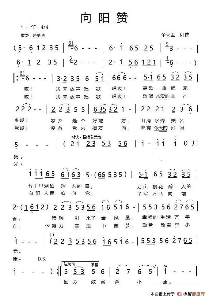 关于《向阳赞》曲谱的评论