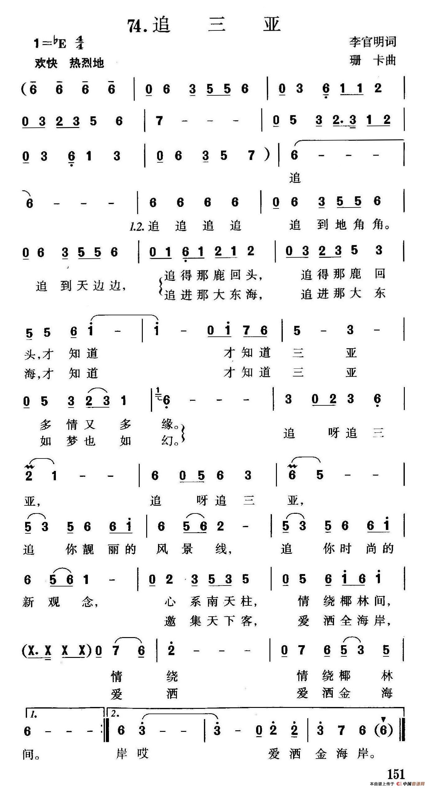 关于《追三亚》曲谱的评论