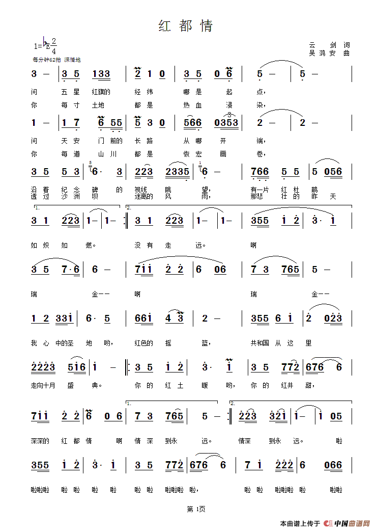 提示:在曲谱图片上单击右键,选择“图片另存为...”即可将曲谱保存到您的电脑中,打印时候可将图片插入到WORD中,调整合适大小打印即可。
