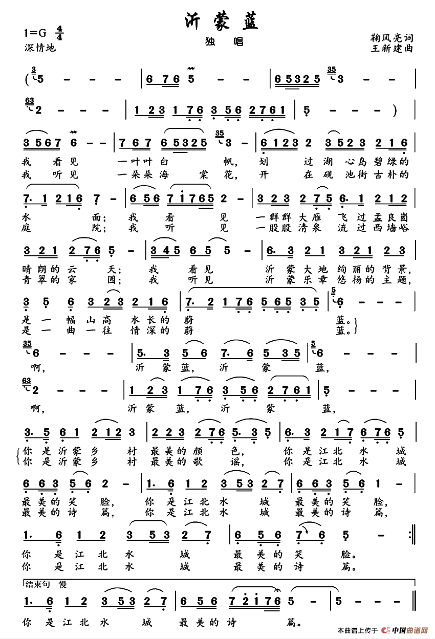 关于《沂蒙蓝》曲谱的评论