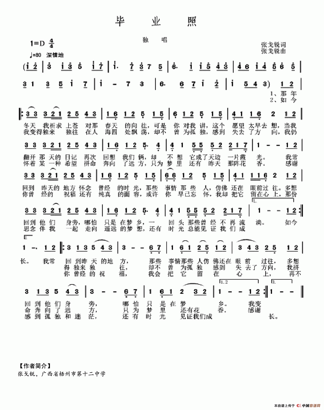 作词:张戈锐 作曲:张戈锐 来源:《中国曲谱网》 上传:沉舟侧畔过