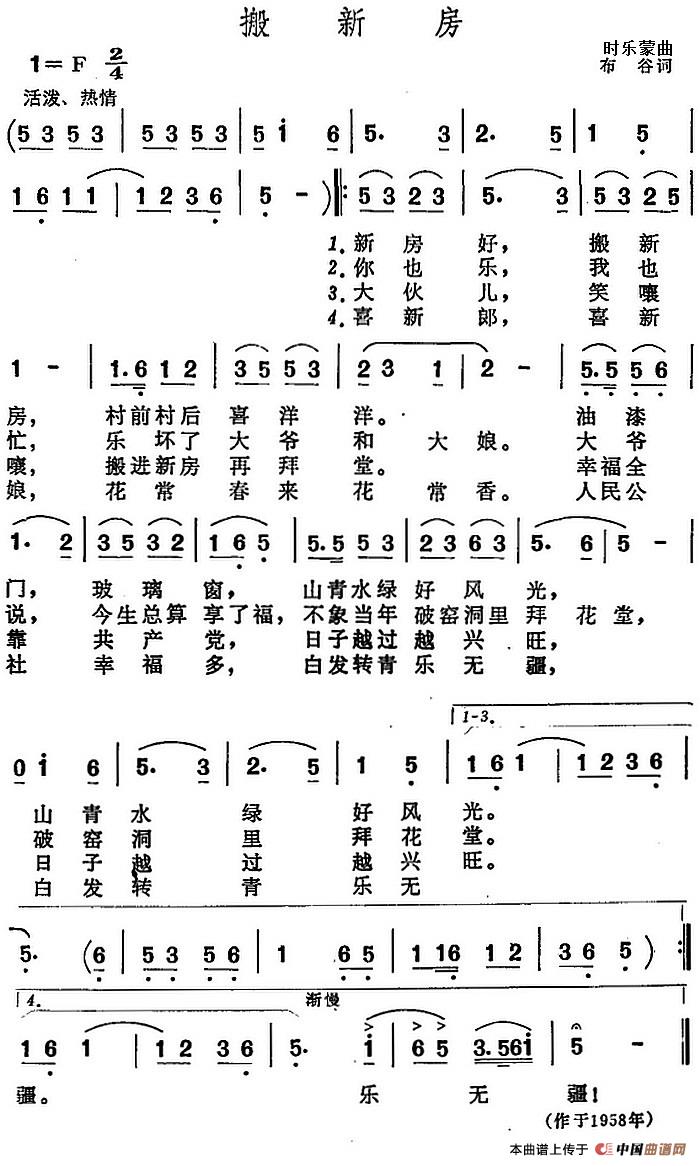 关于《搬新房》曲谱的评论