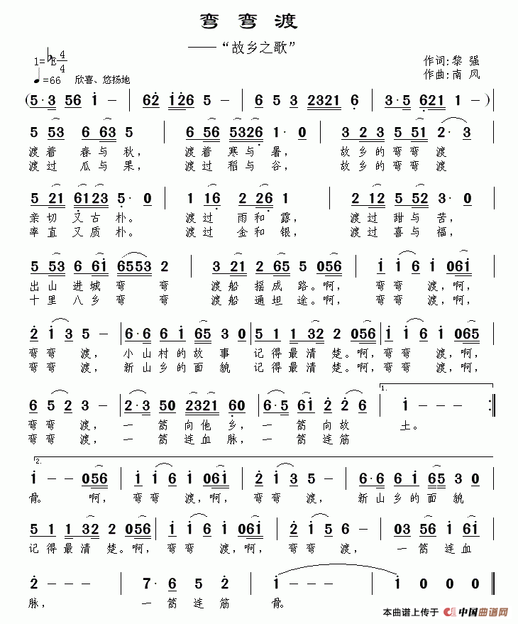 关于《弯弯渡(故乡之歌)》曲谱的评论