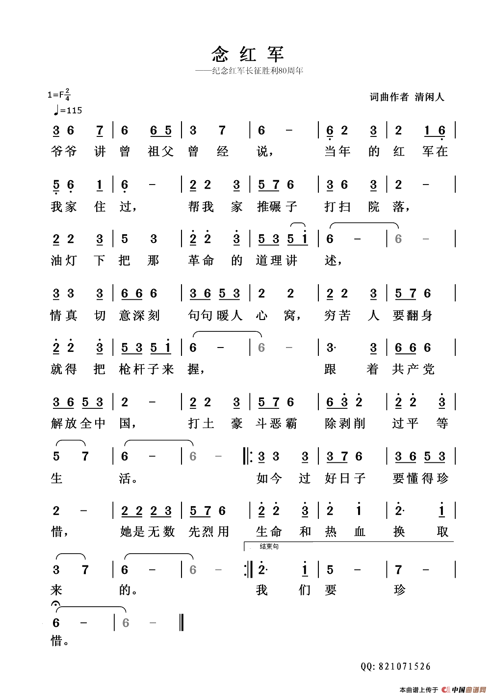 关于《念红军》曲谱的评论