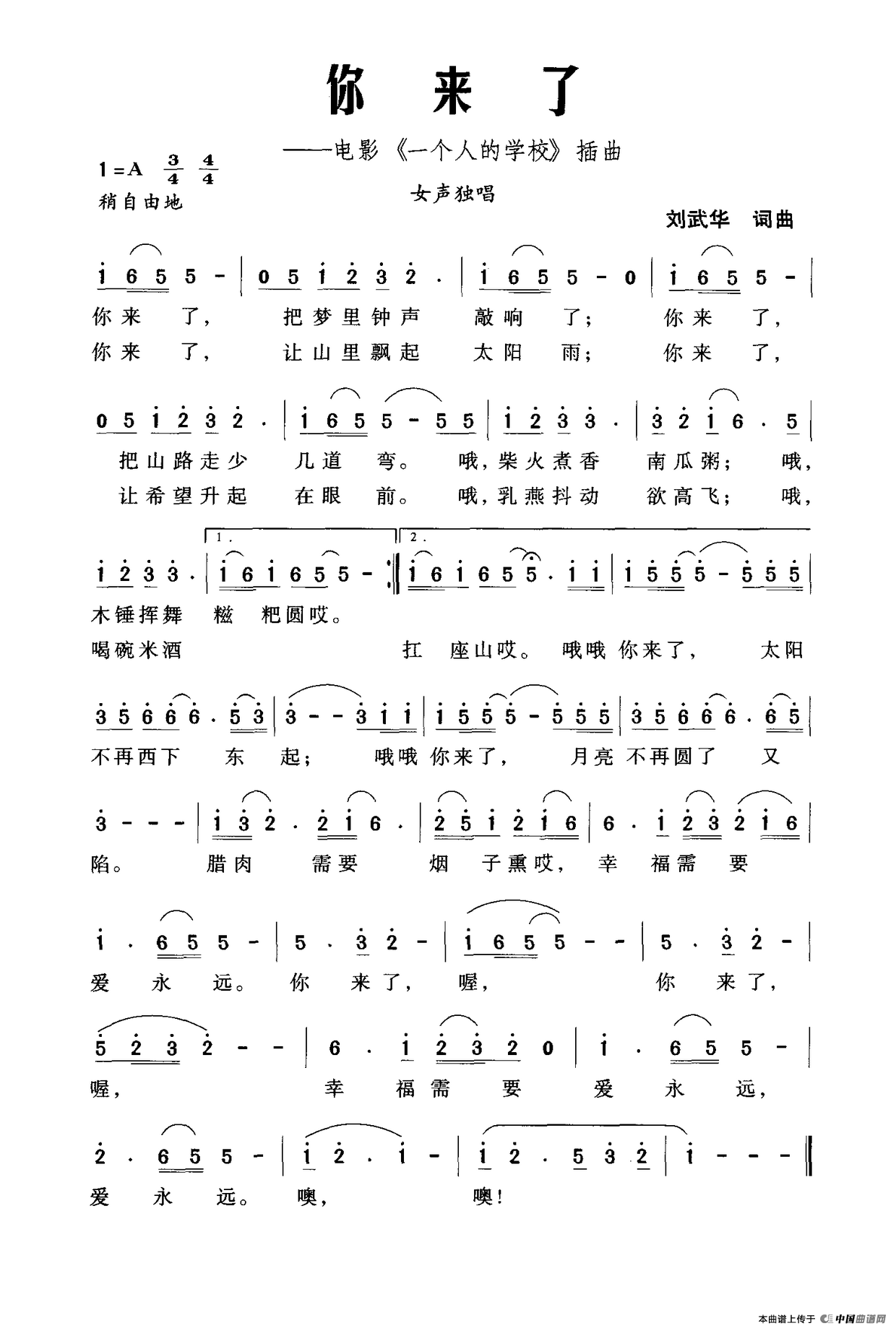 关于《你来了》曲谱的评论
