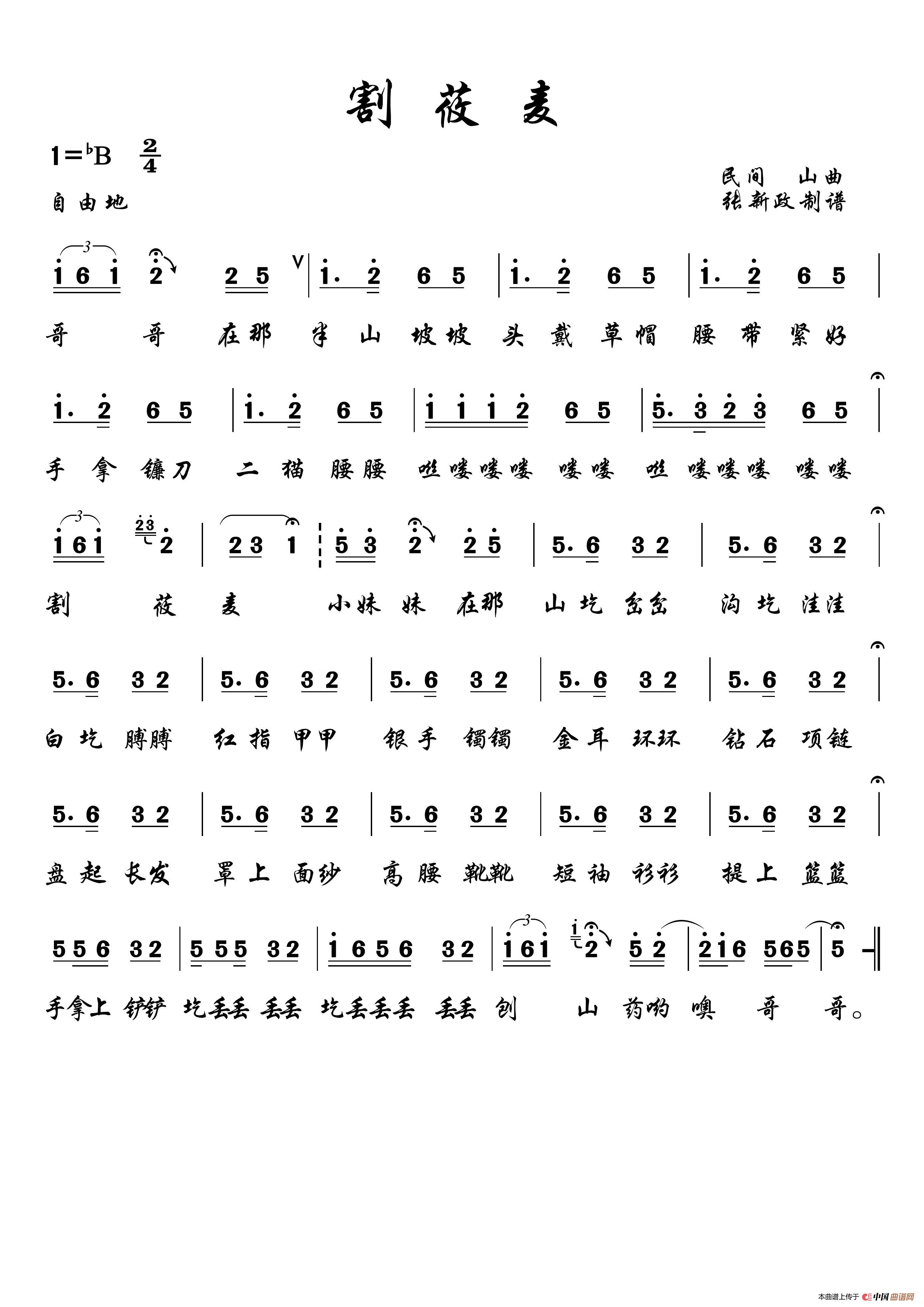 关于《割莜麦 》曲谱的评论