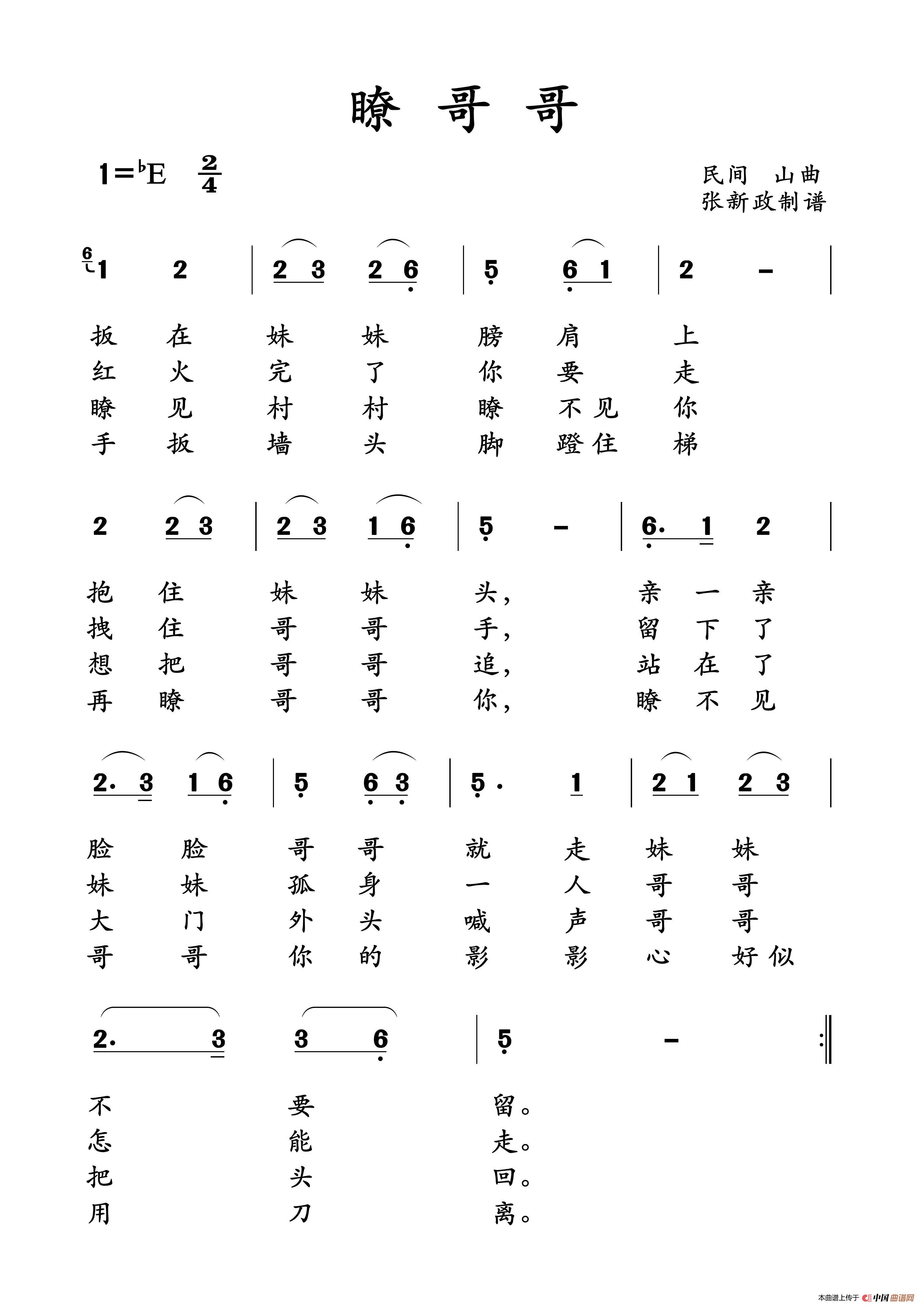 关于《瞭哥哥》曲谱的评论