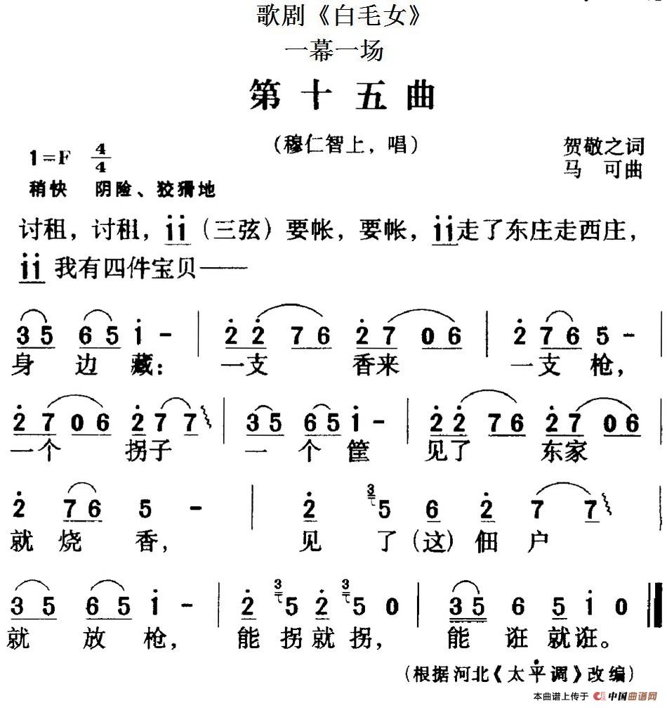 关于《歌剧《白毛女》全剧之第十五曲》曲谱的评论