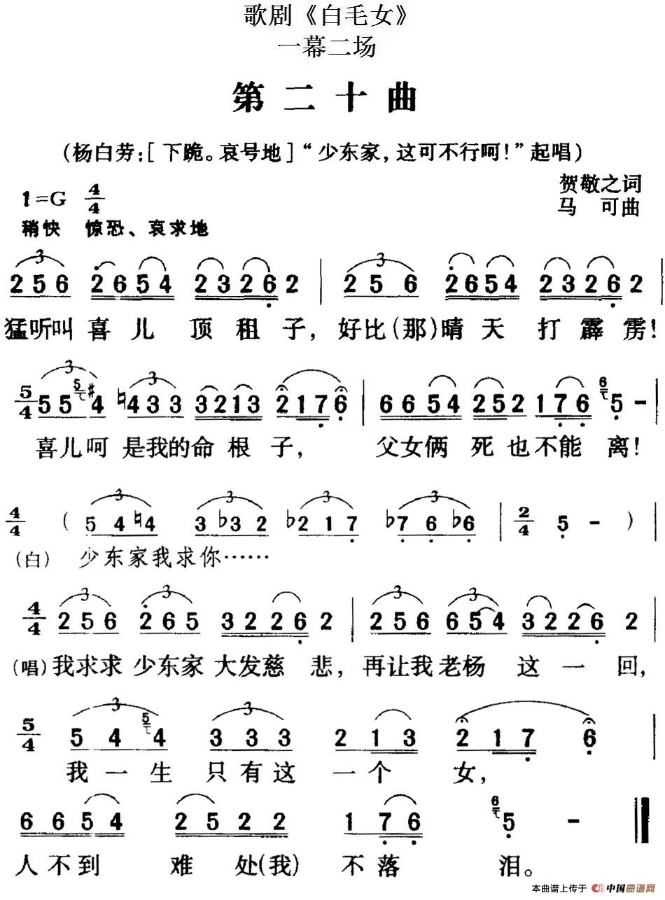 关于《歌剧《白毛女》全剧之第二十曲》曲谱的评论