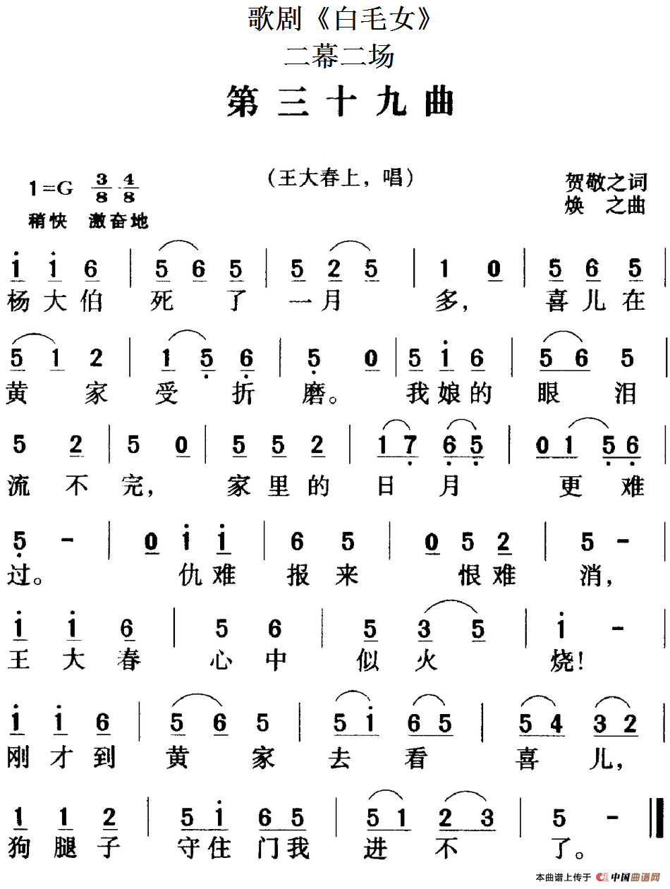 关于《歌剧《白毛女》全剧之第三十九曲》曲谱的评论