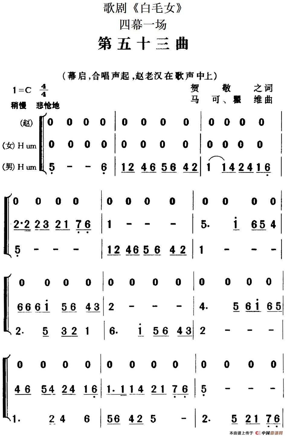 关于《歌剧《白毛女》全剧之第五十三曲》曲谱的评论