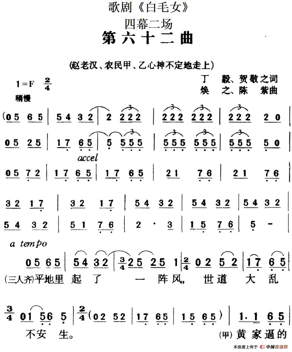 关于《歌剧《白毛女》全剧之第六十二曲》曲谱的评论