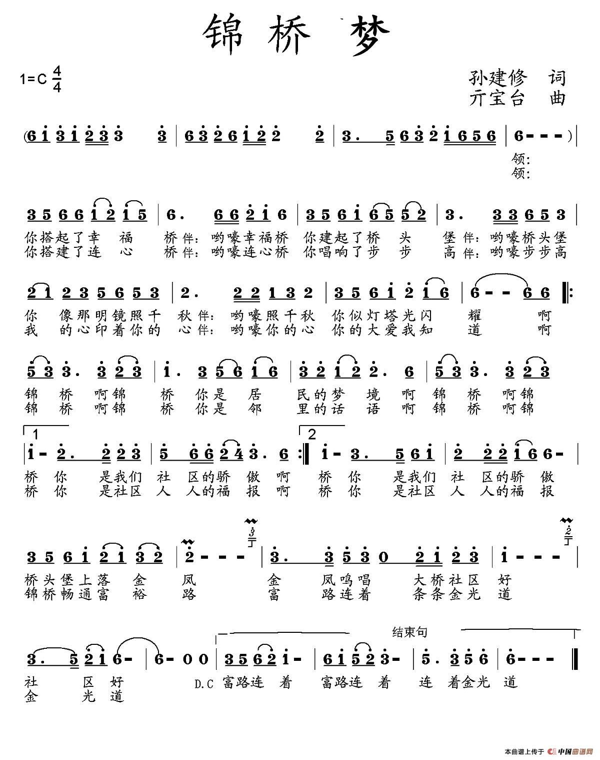 致谢:《中国曲谱网》衷心感谢作者老师馈赠原版歌谱!