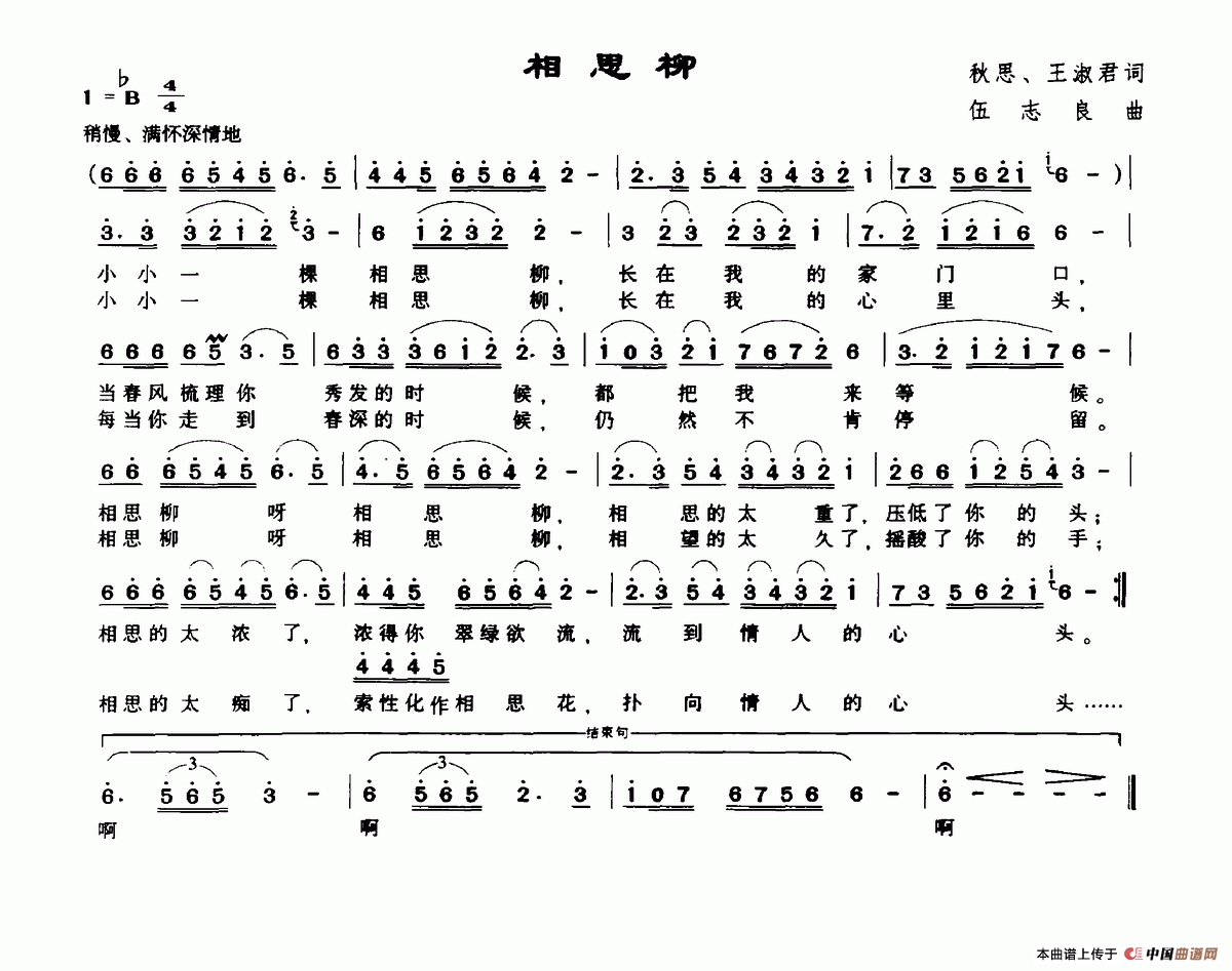 关于《相思柳》曲谱的评论