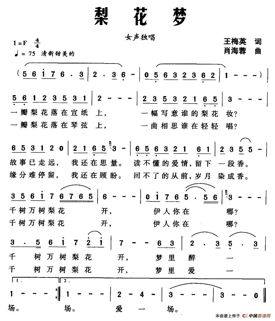 关于《梨花梦》曲谱的评论